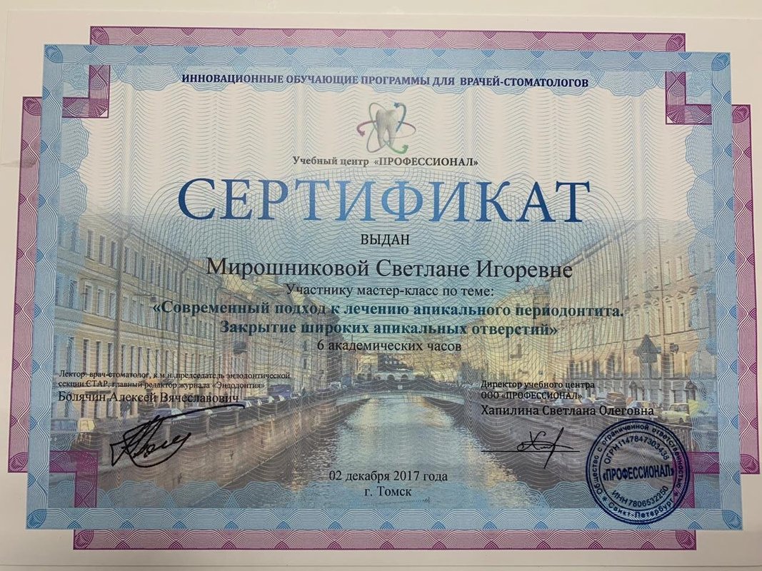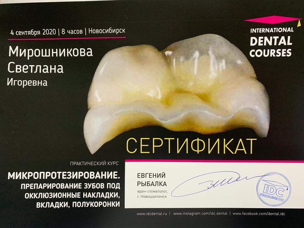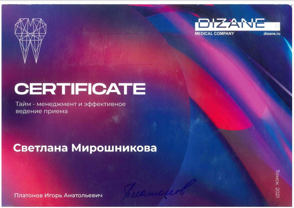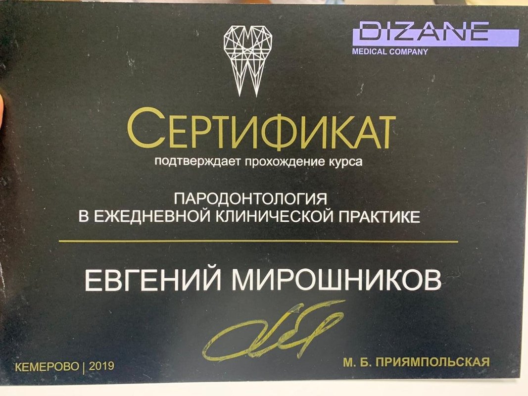Доброго здравия, уважаемый человек, читающий мои строчки! Мне 61 год. Пошёл учиться в первый класс и пошёл зубы лечить почти одновременно. Природа щедро наградила меня проблемными зубами. Так всю жизнь с ними и мучился. Много клиник повидал, много разного на себе испытал. На сегодняшний день я очень опытный пациент по теме лечения зубов. Недавно лечил и протезировал зубы в клинике «Миродент». Мои доктора Светлана Игоревна, лечила зубы, и Евгений Борисович, делал съёмный протез, с моими проблемами справились на ура! Подвожу итоги для моих докторов: общение лёгкое, рука лёгкая, цены лёгкие, качество высокое. Не верите, проверьте сами. Я же очень доволен, что судьба (или моя дочь Екатерина) свела меня с такими хорошими людьми. Чего и Вам желаю, читающий мои строчки. С уважением, Николай Михайлович.
