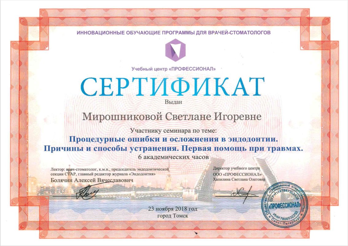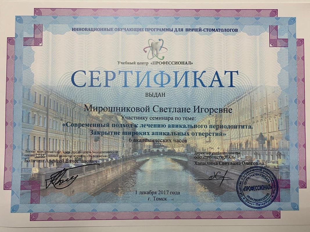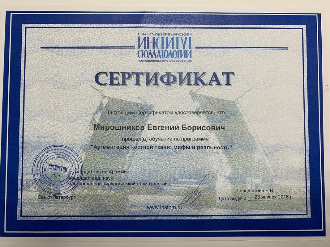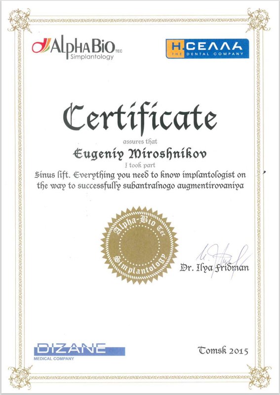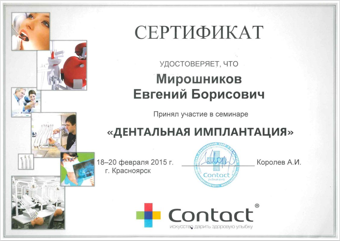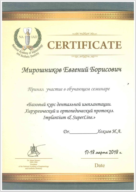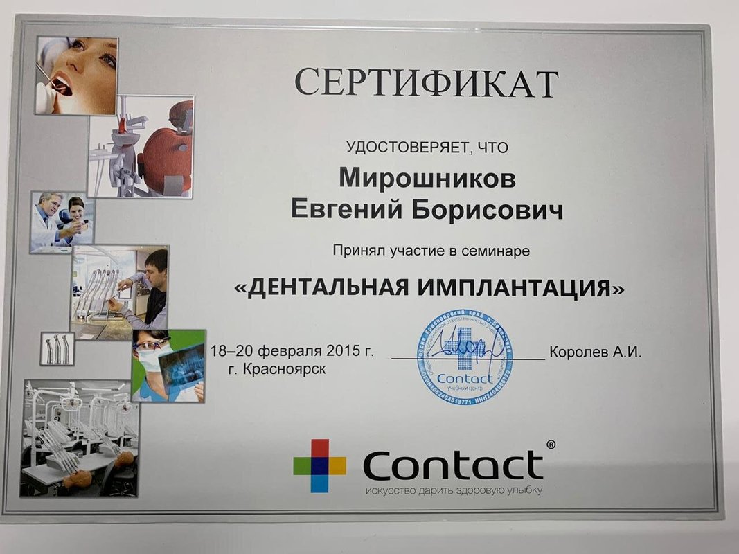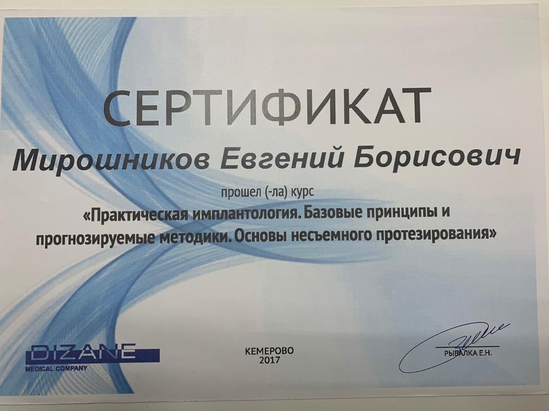 Я осталась очень довольна, особенно хочу отметить руководителя клиники Мирошникова, я обращаюсь только к нему. Это доброжелательный врач с отличным чувством юмора, который отличается деликатностью, тактом, чуткостью и профессионализмом. Все процедуры он проводит быстро, аккуратно и без затруднений. Замечательный специалист! В последний раз я была у него на имплантации.