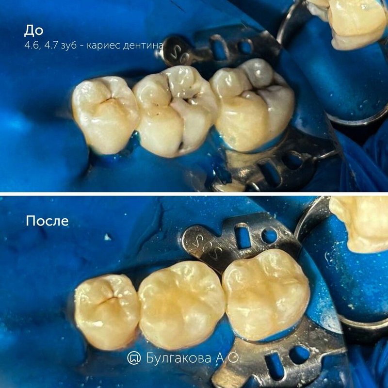 Лечила зубы у доктора Булгаковой — очень понравилось! Врач компетентная, милая, всё подробно объяснила: и про причины кариеса, и про уход, и про мою конкретную проблему (зубы расположены близко, пища забивается, даже нить и ирригатор не всегда помогают). Но перед этим мы сделали рентген, поэтому осмотр был очень внимательный.