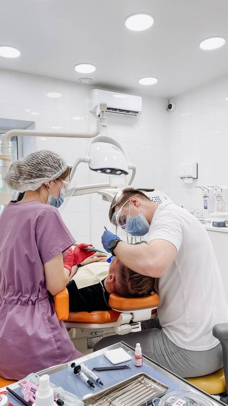 Отличный доктор в клинике лечил мой зуб и ставил пломбу. В процессе он был внимательным, всё объяснял по ходу процедуры, а главное — хорошо меня обезболил.